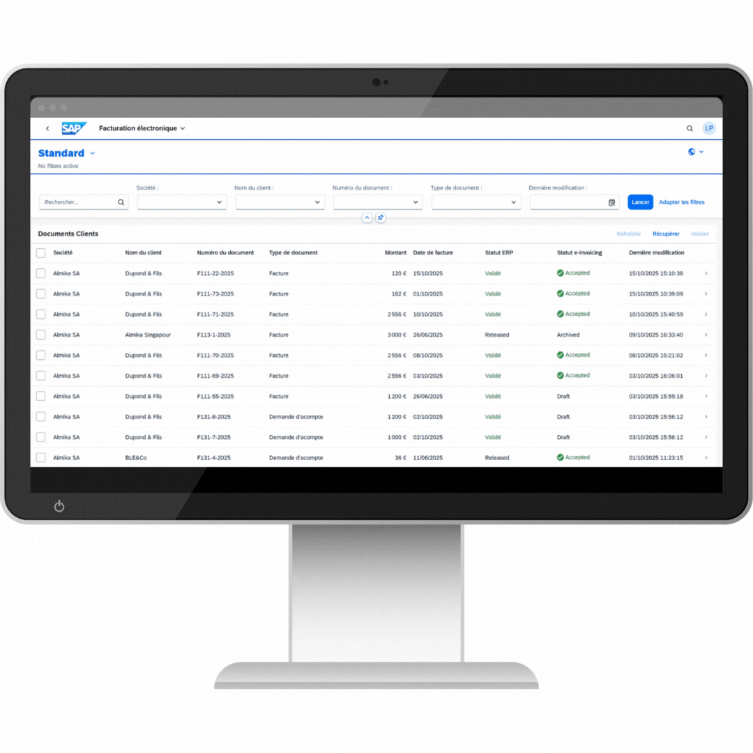 Notre solution de dématérialisation de facture a été conçue spécifiquement pour votre ERP SAP. Vous restez dans votre univers SAP et conservez donc vos habitudes et surtout vos niveaux de sécurité habituels.